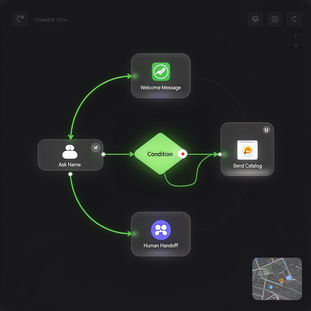 Drag-and-drop flows that automate FAQs, lead capture and follow-ups — no code required.